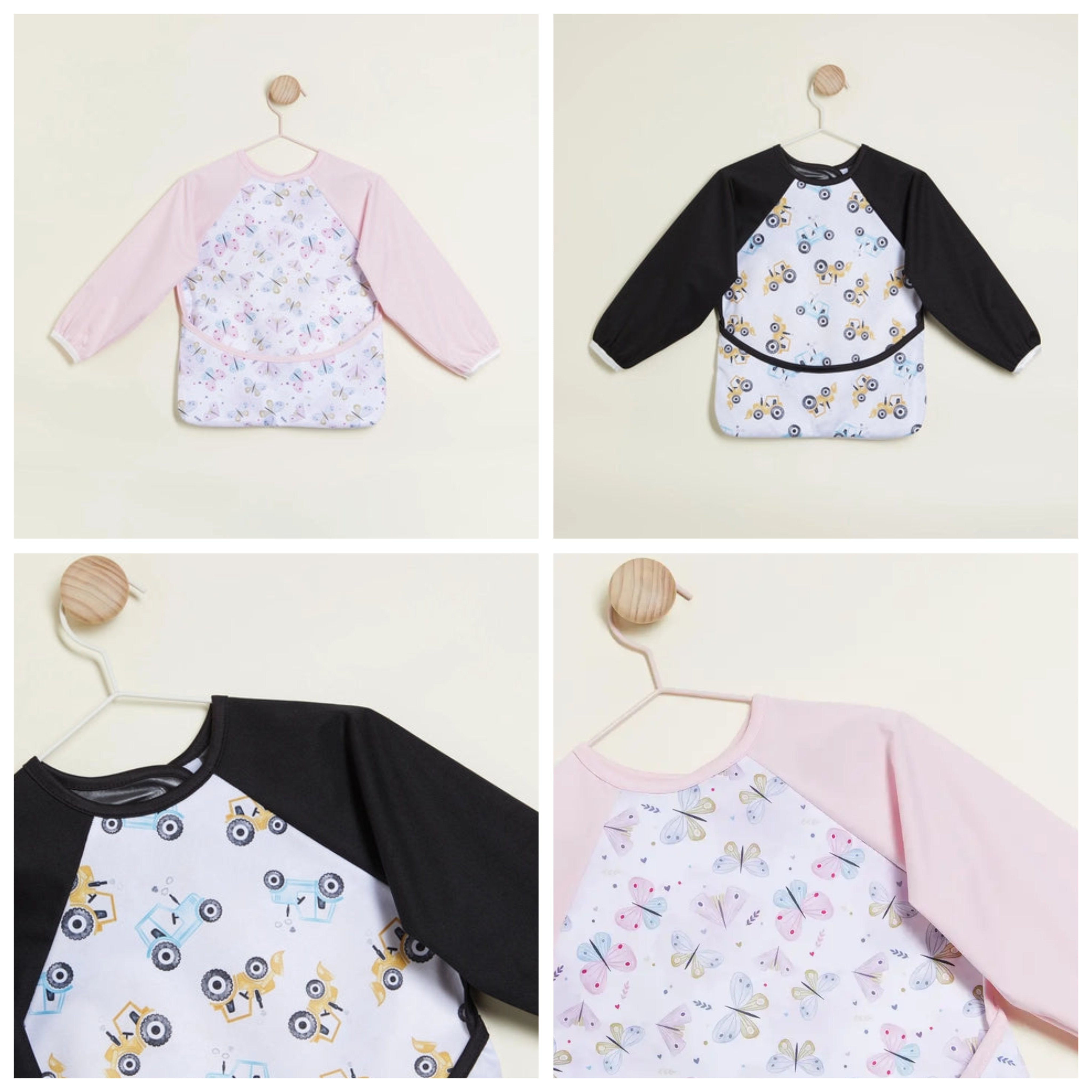 - Our Smocks or sleeved bibs come in our breathable waterproof PUL fabric which is lightweight, easy to wipe and machine washable.