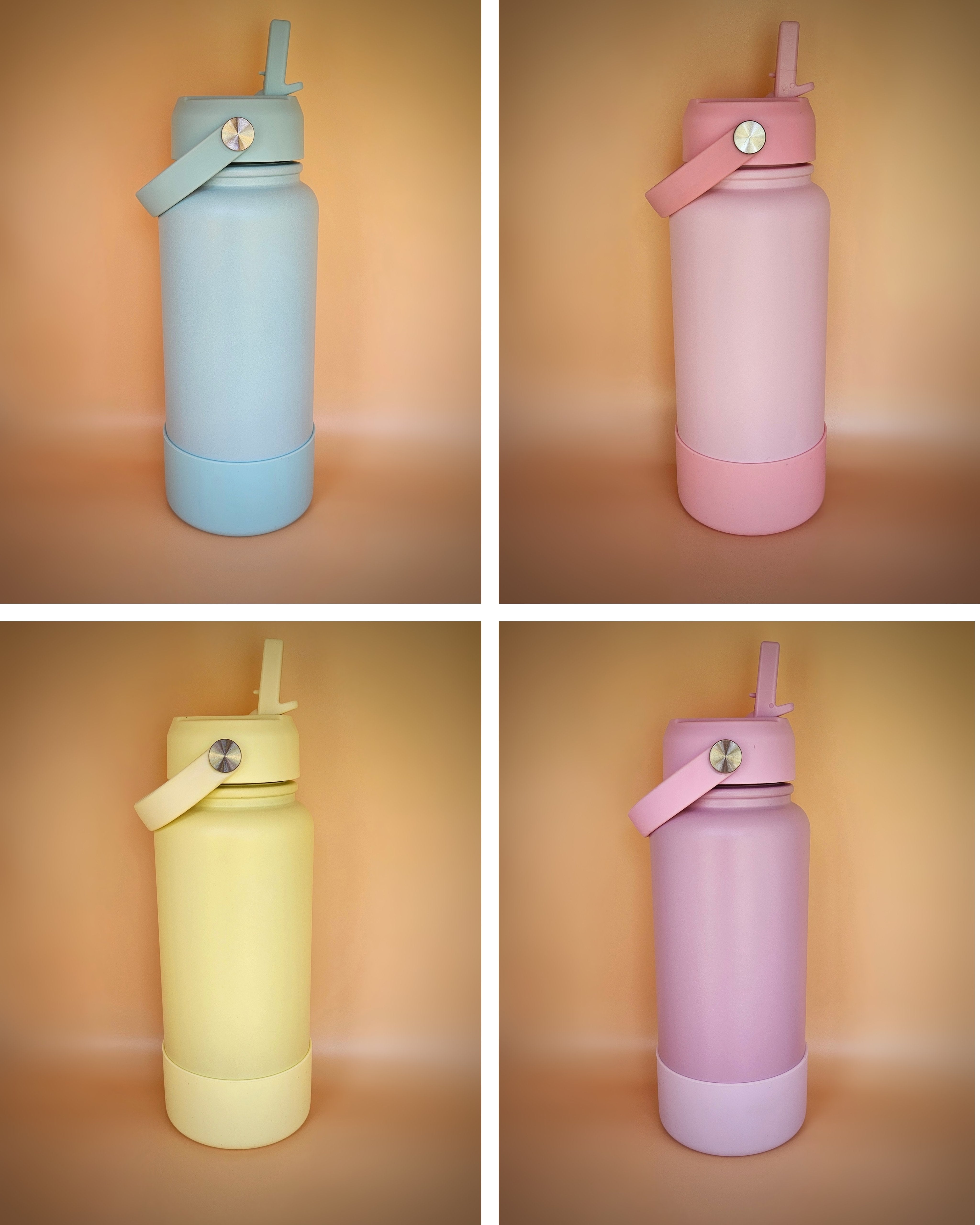 Quench your thirst with our double wall vacuum insulated stainless steel drink bottles. They come in four different colours: Pink, Purple, Yellow and Blue.
