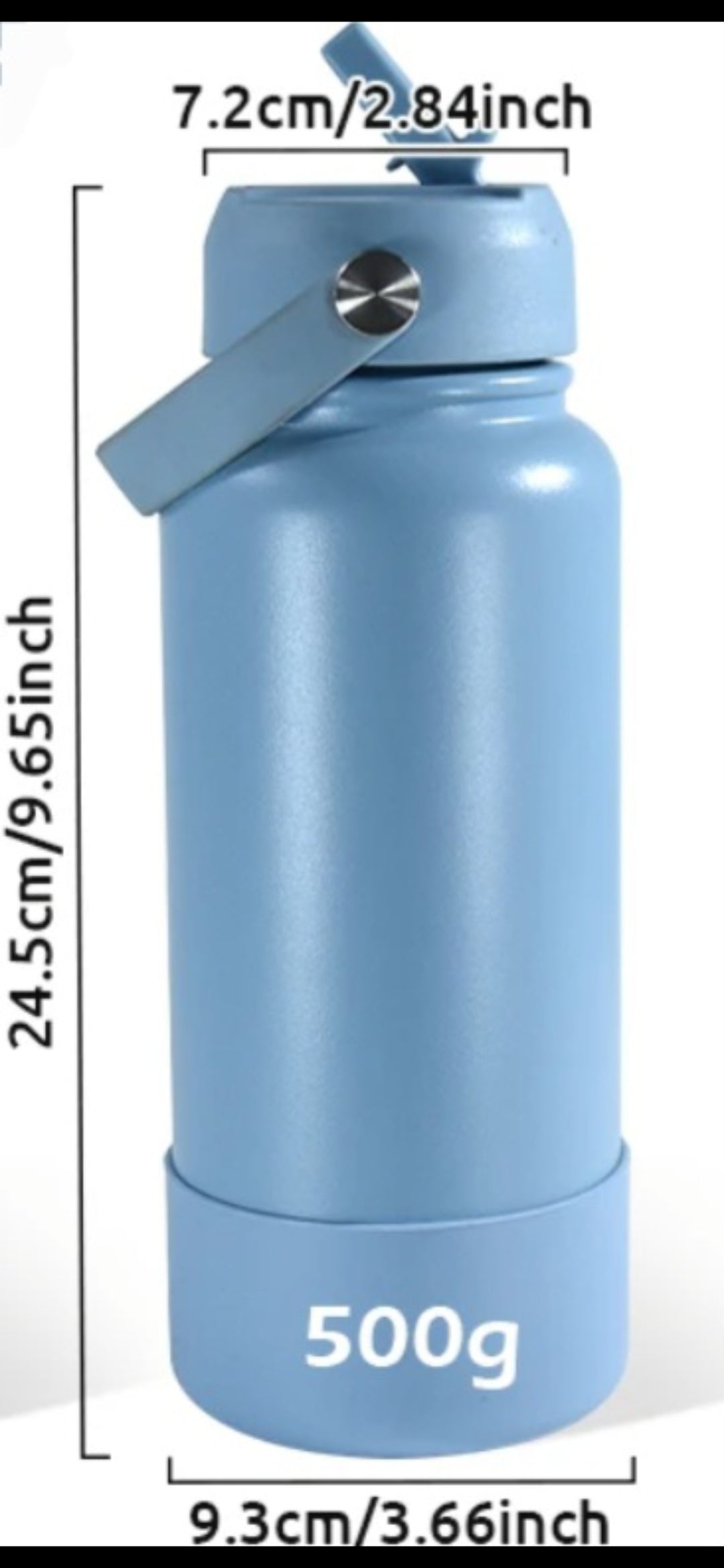 • Double wall vacuum insulated stainless steel bottle with handle.